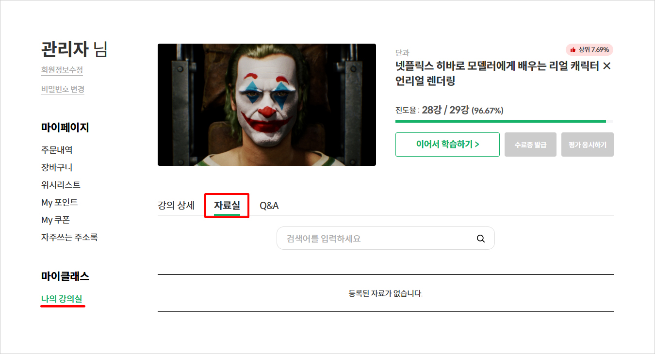 [마이클래스] > [나의 강의실]로 이동해 주세요.